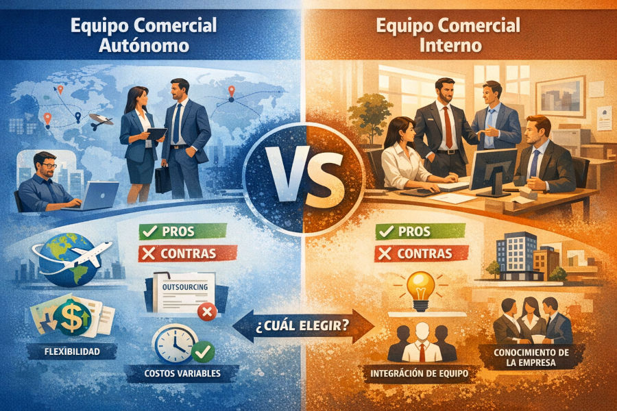 Elegir entre contratar un equipo de comerciales autónomos o construir un equipo comercial interno es una de las decisiones con más impacto en el crecimiento de una empresa. No solo afecta al coste y a la velocidad para abrir mercado, sino también a la forma de gestionar la relación con el cliente, la previsibilidad del pipeline, la calidad del discurso de ventas y la capacidad de escalar en nuevos territorios.
